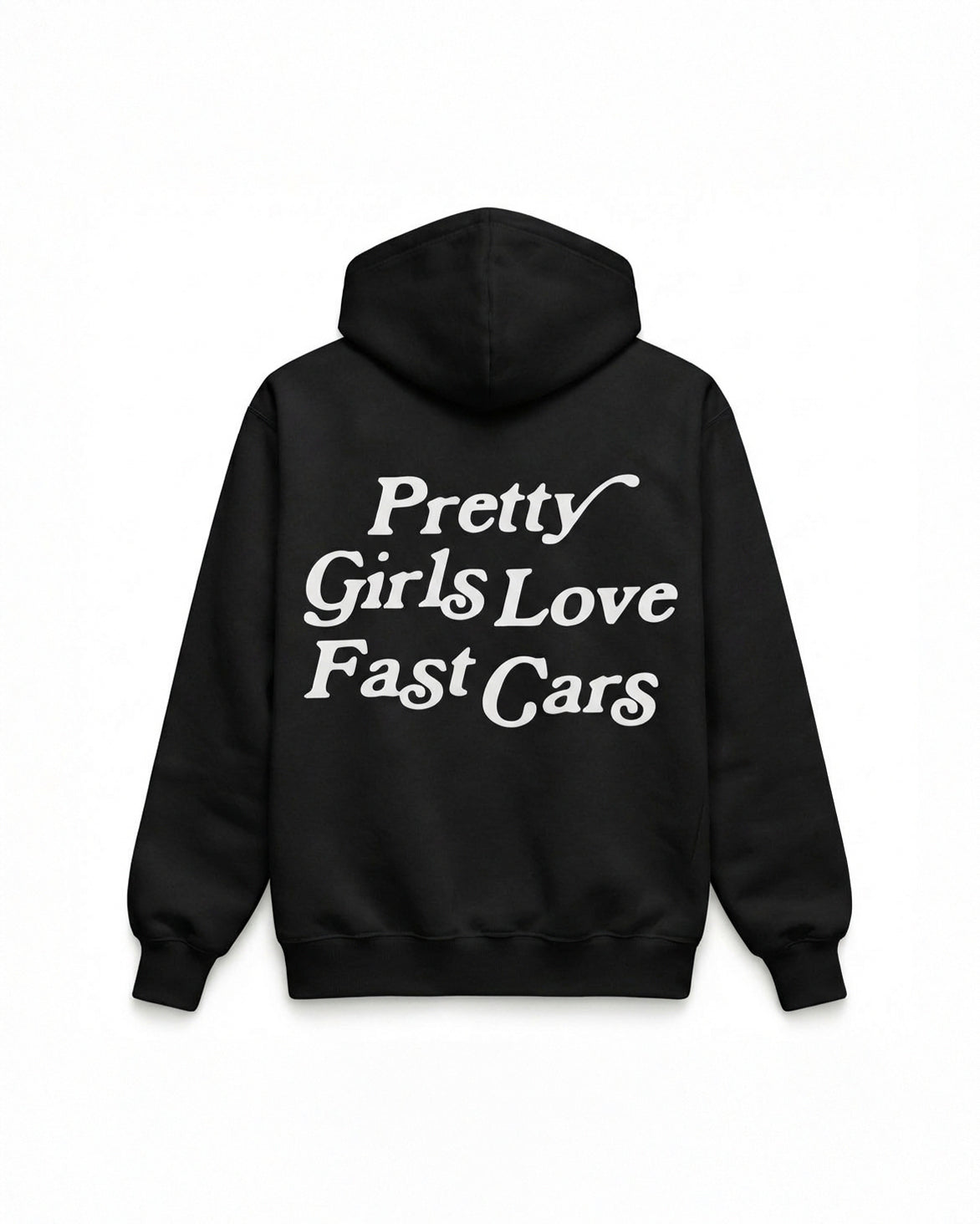 Pretty Girls Love Fast Cars - a statement hoodie made for those who live fast and dress with intent. Clean design, premium feel, available in black, off-white, and pink.